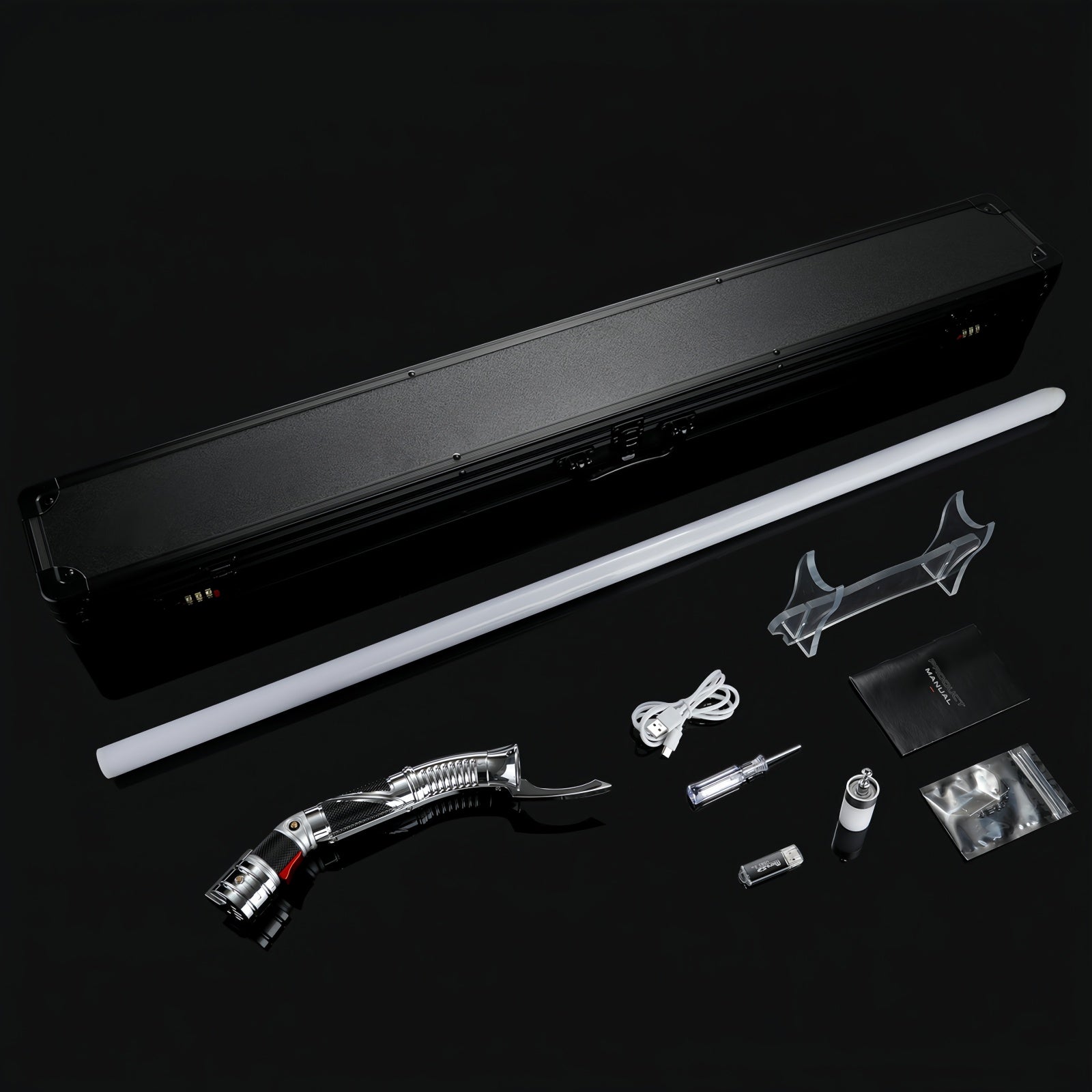 • Flash on Clash: The saber emits a brilliant white light accompanied by realistic sound effects upon impact, providing an authentic clash experience.