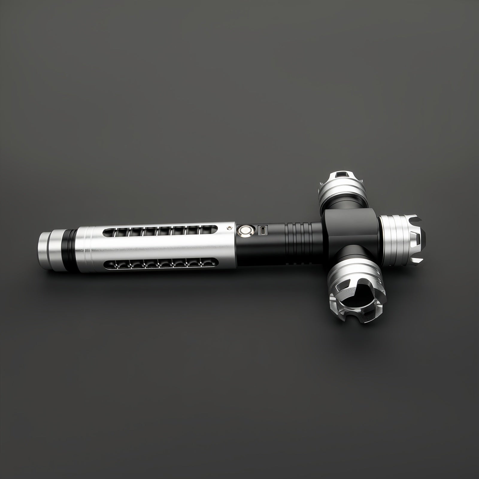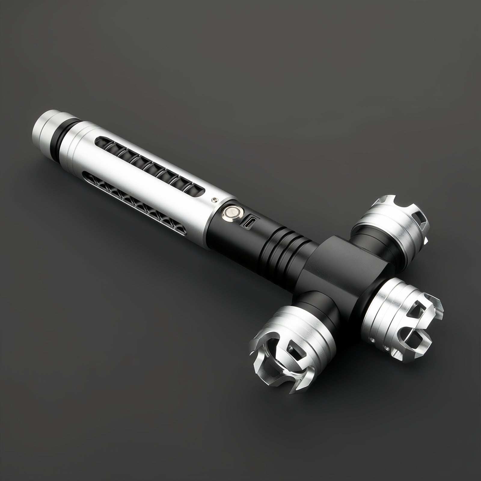 • Gesture Control: The lightsaber is equipped with gesture control functionality to turn the saber on or off.
