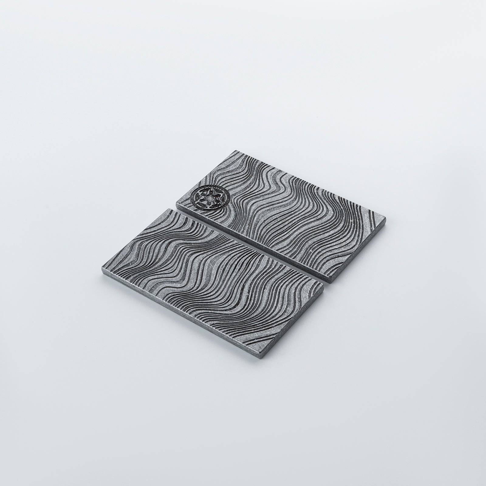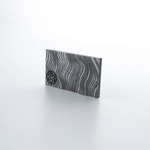 Metal beskar plate with metallic. grey and gold finishing.